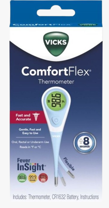 Get temperature results quickly and easily, when you need them most. The Vicks ComfortFlex Digital Thermometer provides accurate readings within +/- 0.2 degrees F in only 8 seconds. Designed for comfort and convenience, this thermometer has a flexible tip. The unique Fever InSight guide helps you get temperature readings at a glance with a color coded display, and understand them easily.